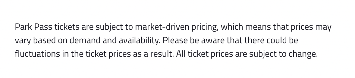 But let’s assume you get through the ballot and to the checkout. What’s happened to prices in this period? They’ve obviously gone up. Now, year-on-year price increases are to be expected. For reference, the 4-day park pass I purchase went from $189 in 2022, to $250 in 2023 (32.3% increase), to $279 (11.6% increase) in 2024, to $309+ in 2025 (10.8% increase). While each of those rises could be considered relatively incremental in isolation, when you look at the bigger picture, it’s a 63.5% increase in four years.
